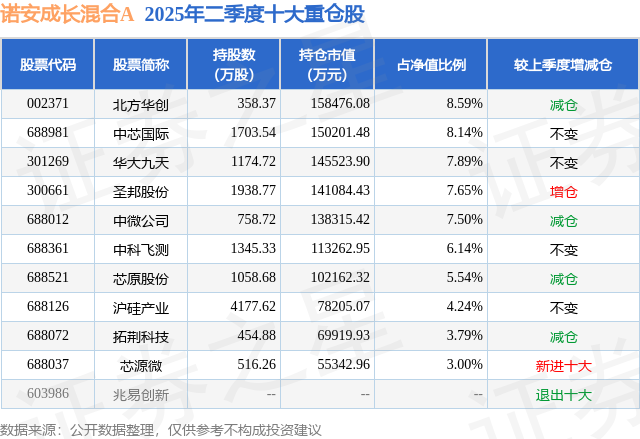 根据2025基金半年报公募基金重仓股数据,重仓该股的公募基金共26家,其中持有数量最多的公募基金为诺安基金的诺安成长混合A。诺安成长混合A目前规模为184.47亿元,最新净值1.893(10月16日),较上一交易日下跌1.76%,近一年上涨53.28%。该公募基金现任基金经理为刘慧影。刘慧影在任的基金产品包括:诺安优化配置混合A,管理时间为2022年8月3日至今,期间收益率为70.21%;诺安积极回报混合A,管理时间为2023年9月29日至今,期间收益率为20.59%。