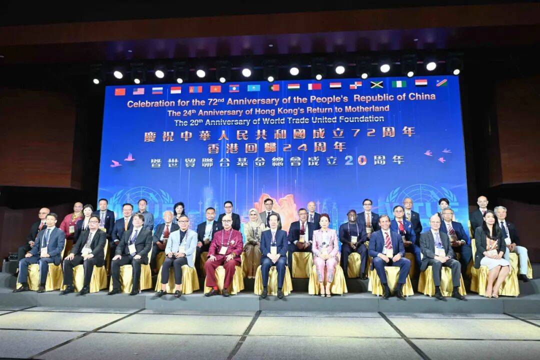 2021年10月3日,“庆祝中华人民共和国成立72周年、香港回归祖国24周年,暨世贸联合基金总会成立20周年”庆典在香港会议展览中心隆重举行。 11国驻港澳总领馆外交代表到贺,全国侨联副主席、全国人大和全国政协代表、香港立法会议员、各界政商和社团代表等社会贤达齐聚一堂。